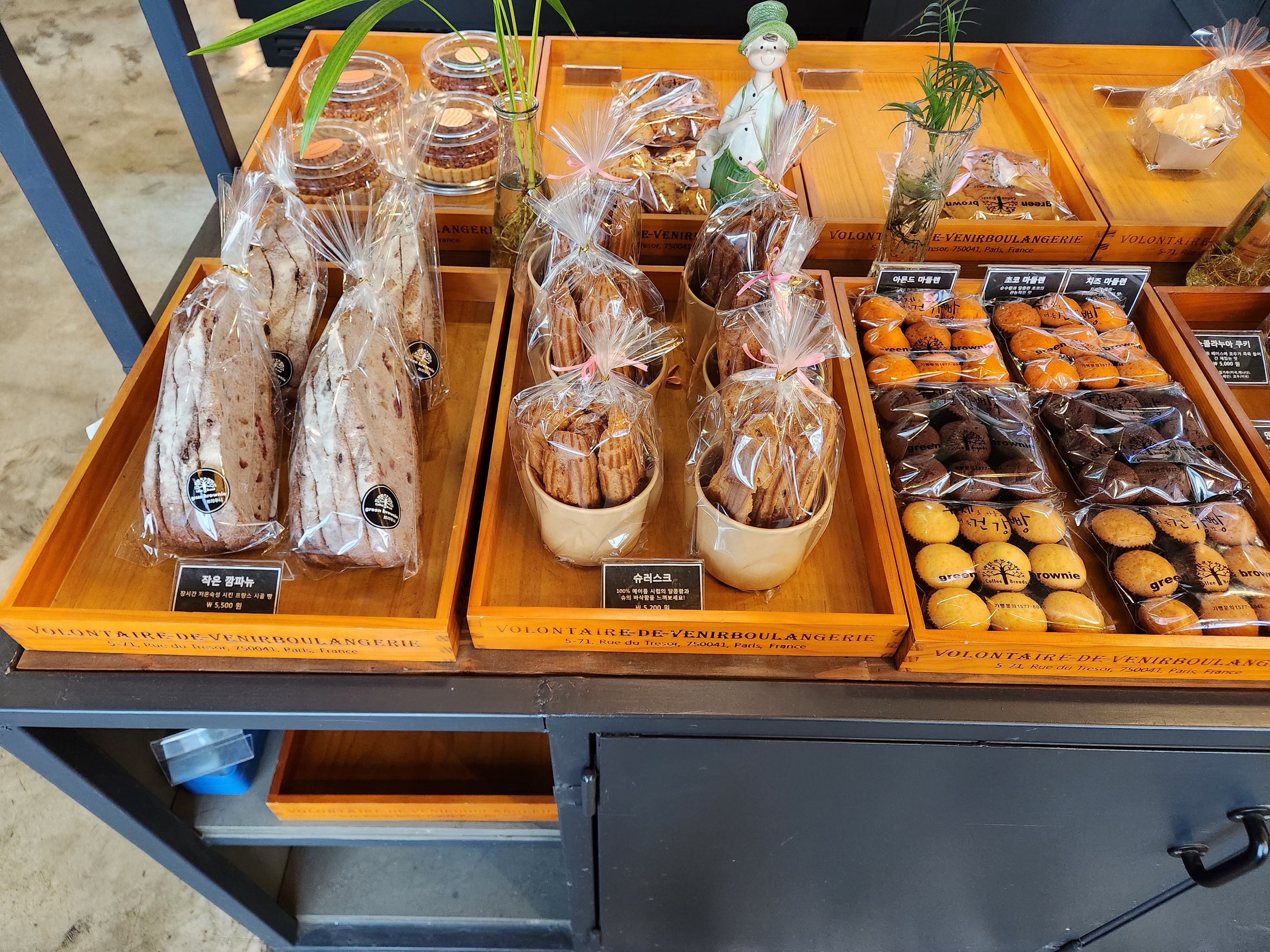 문을 열고 들어가면 베이커리 진열대가 바로 보이네요.