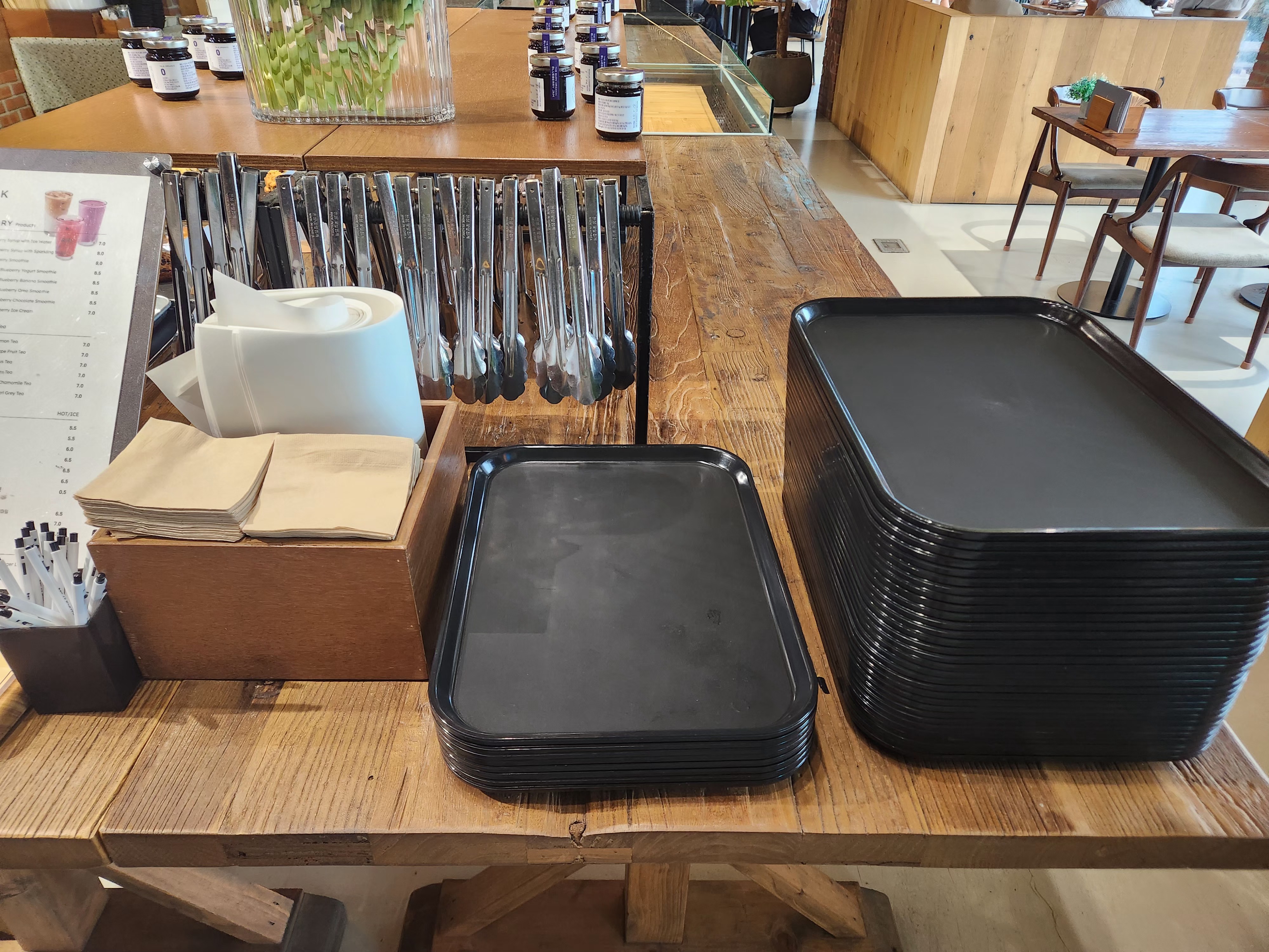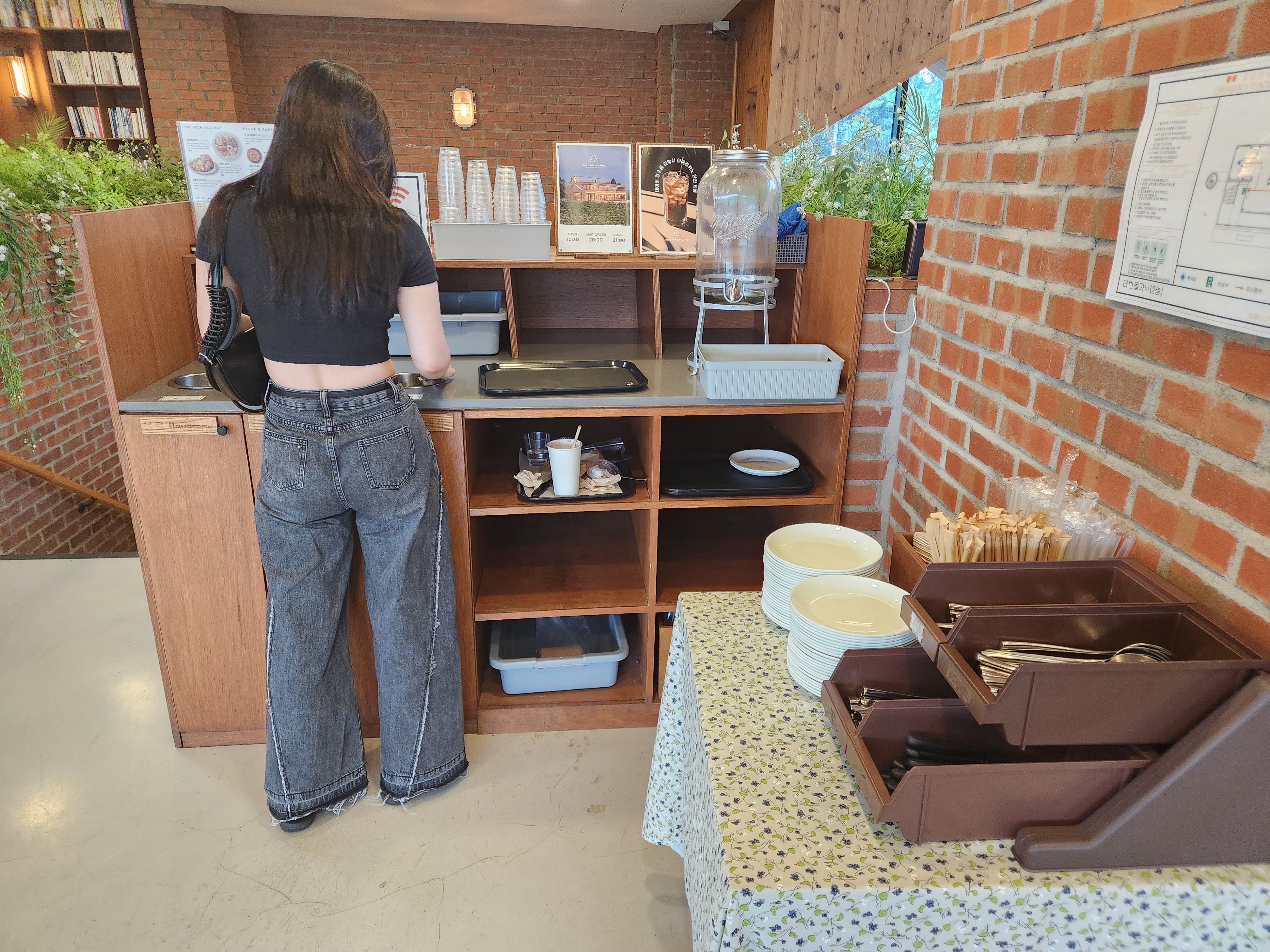 음식을 주문하면 음식을 받고 식사를 마치고 정리하는 것까지 모두 셀프로 이루어져 있어요.