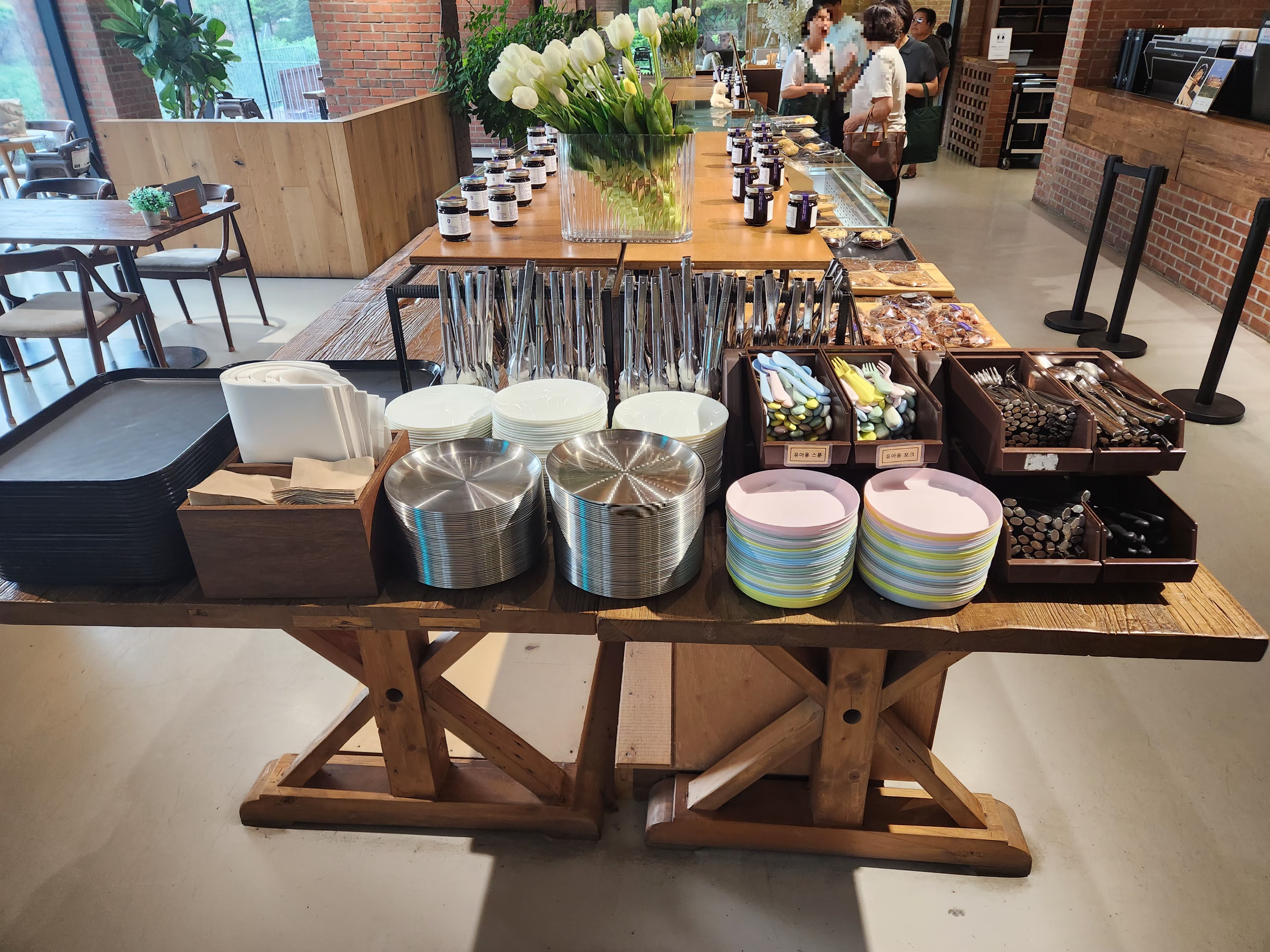 그래서 그런지 필요한 식기들은 한 곳에 잘 정리되어 있다보니 이모님~~, 사장님~~~, 들을 부를 필요 없이 자유롭게 이용이 가능했어요.