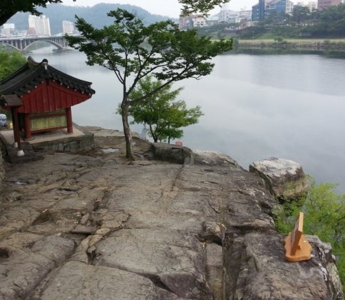 촉석루 왼쪽 돌계단을 따라 내려가면 크고 널찍한 바위가 자리 잡고 있죠.