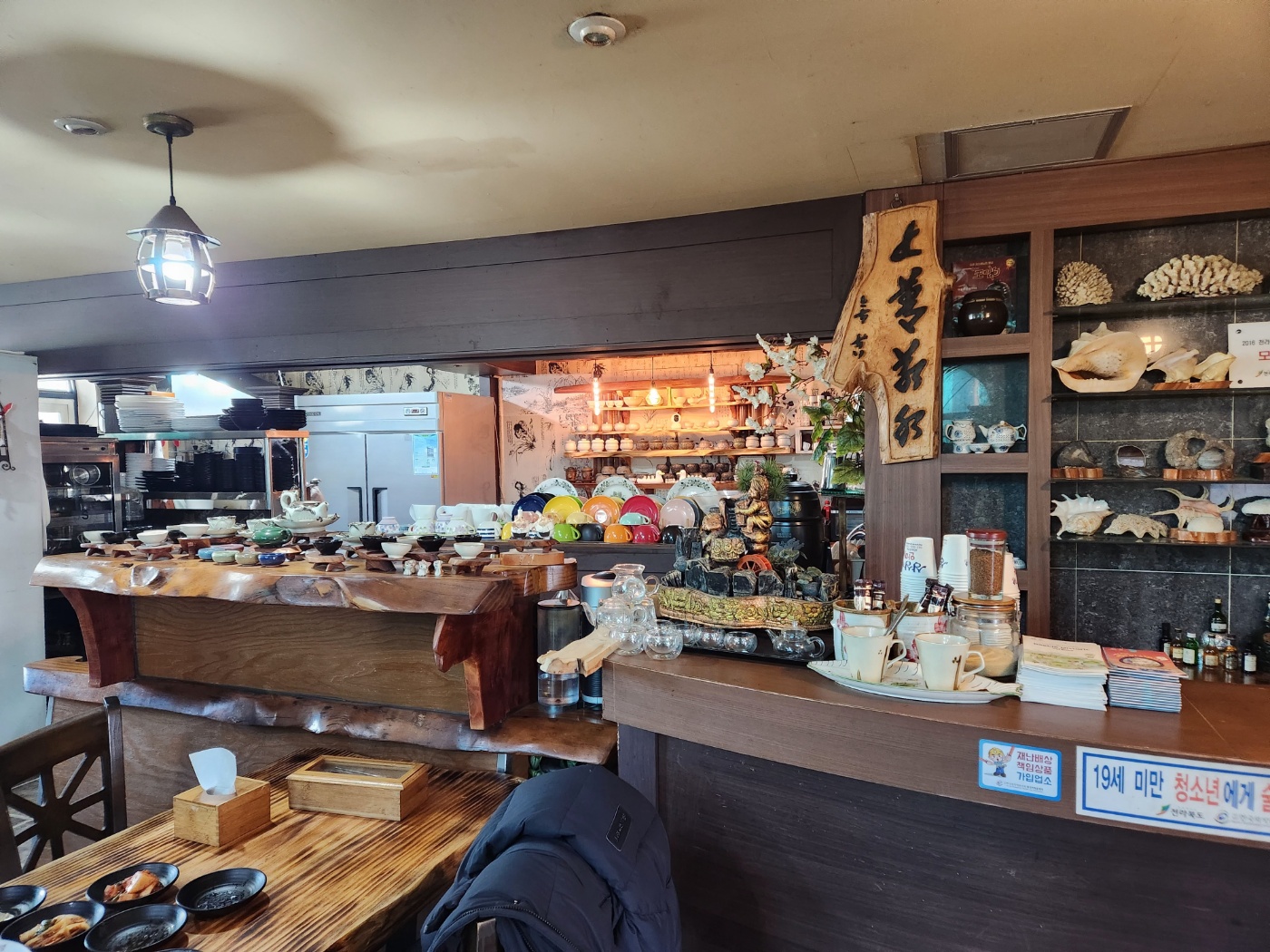 손님들이 알아서 난로 위 주전자 물을 따라 드시더라고요. 그래서 저도 먹어봤더니