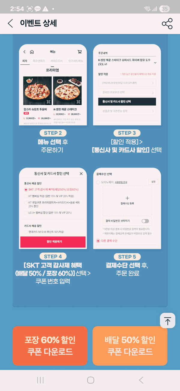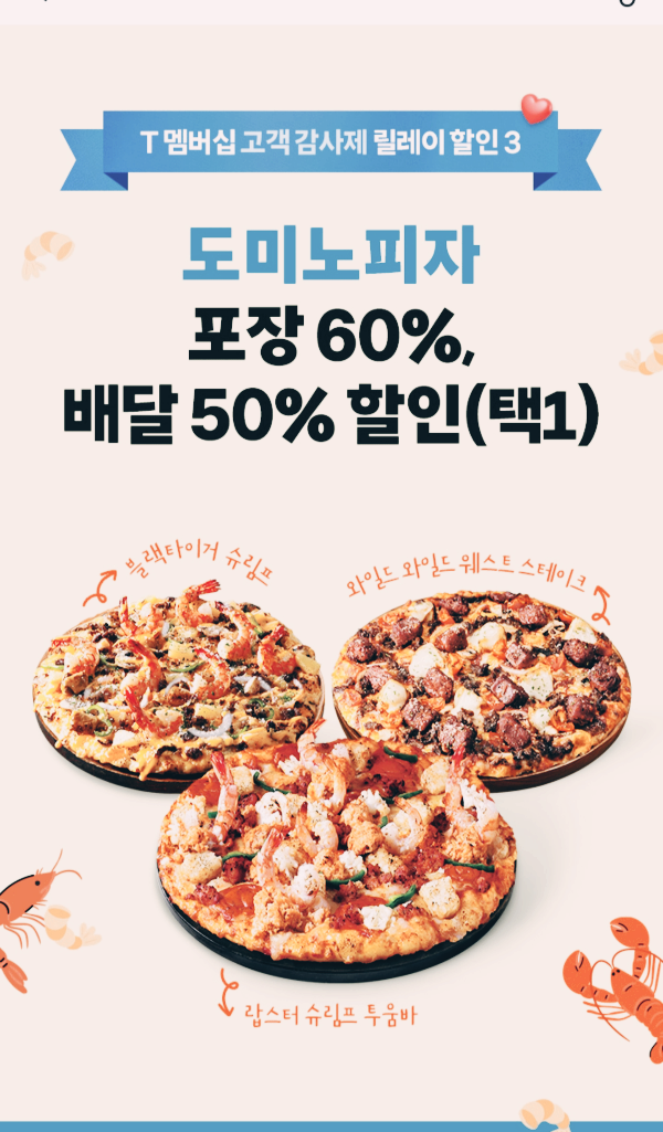 SKT 텔레콤 고객 감사제로 도미노피자를 최대 60% 까지 할인 받고 사전예약으로 피자주문하는 방법 알려드릴게요.