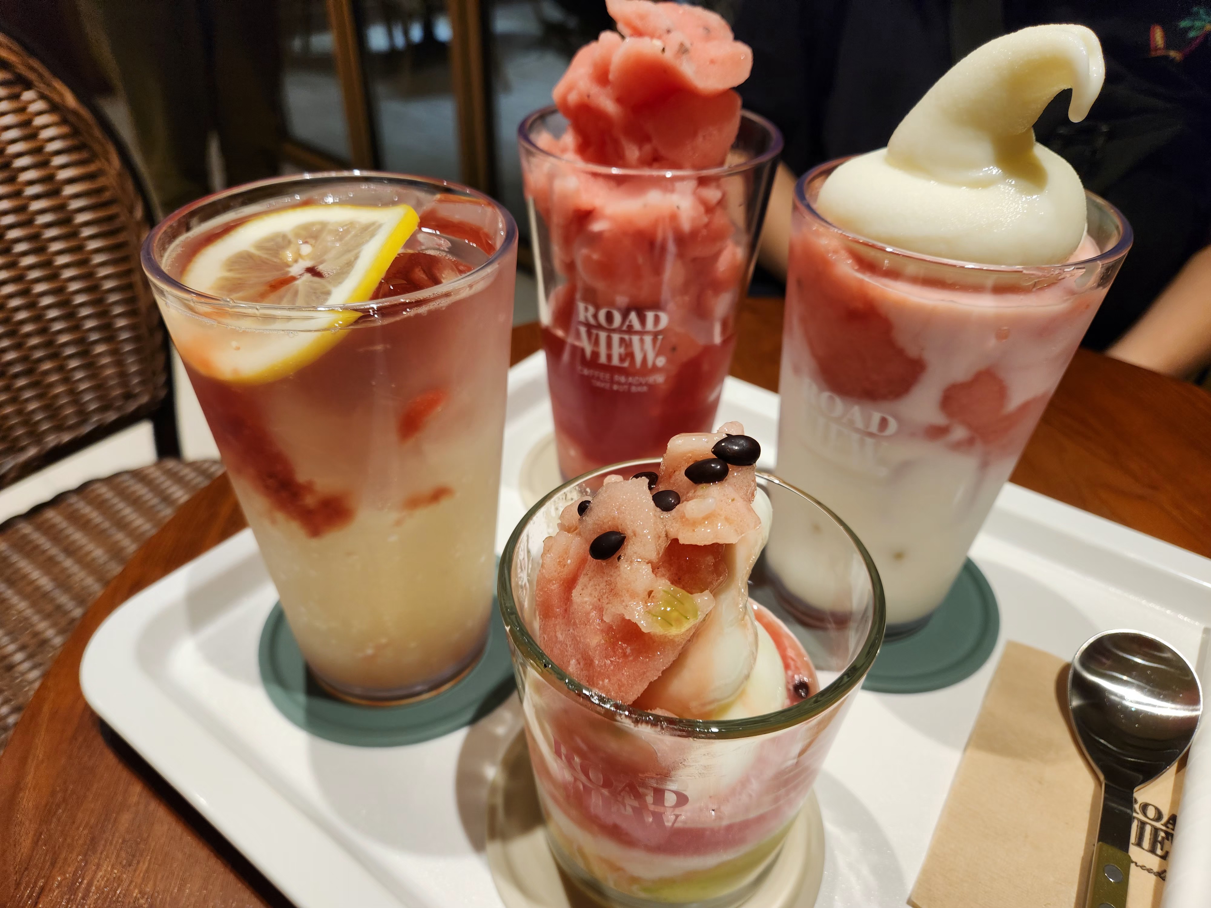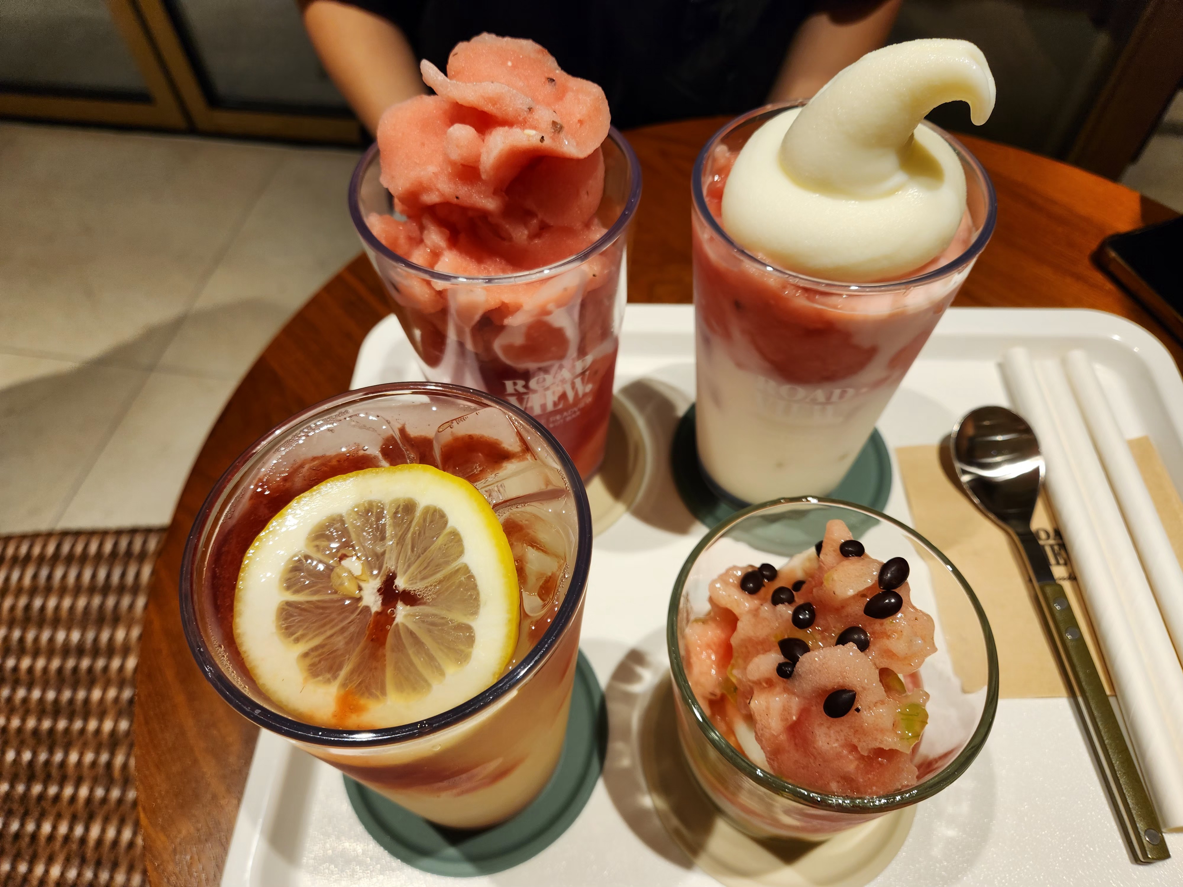 여름이다 보니 커피보다는 시원한 아이스크림과 수박, 딸기, 멜론으로 주문했는데요. 다양한 여름 과일들이네요.