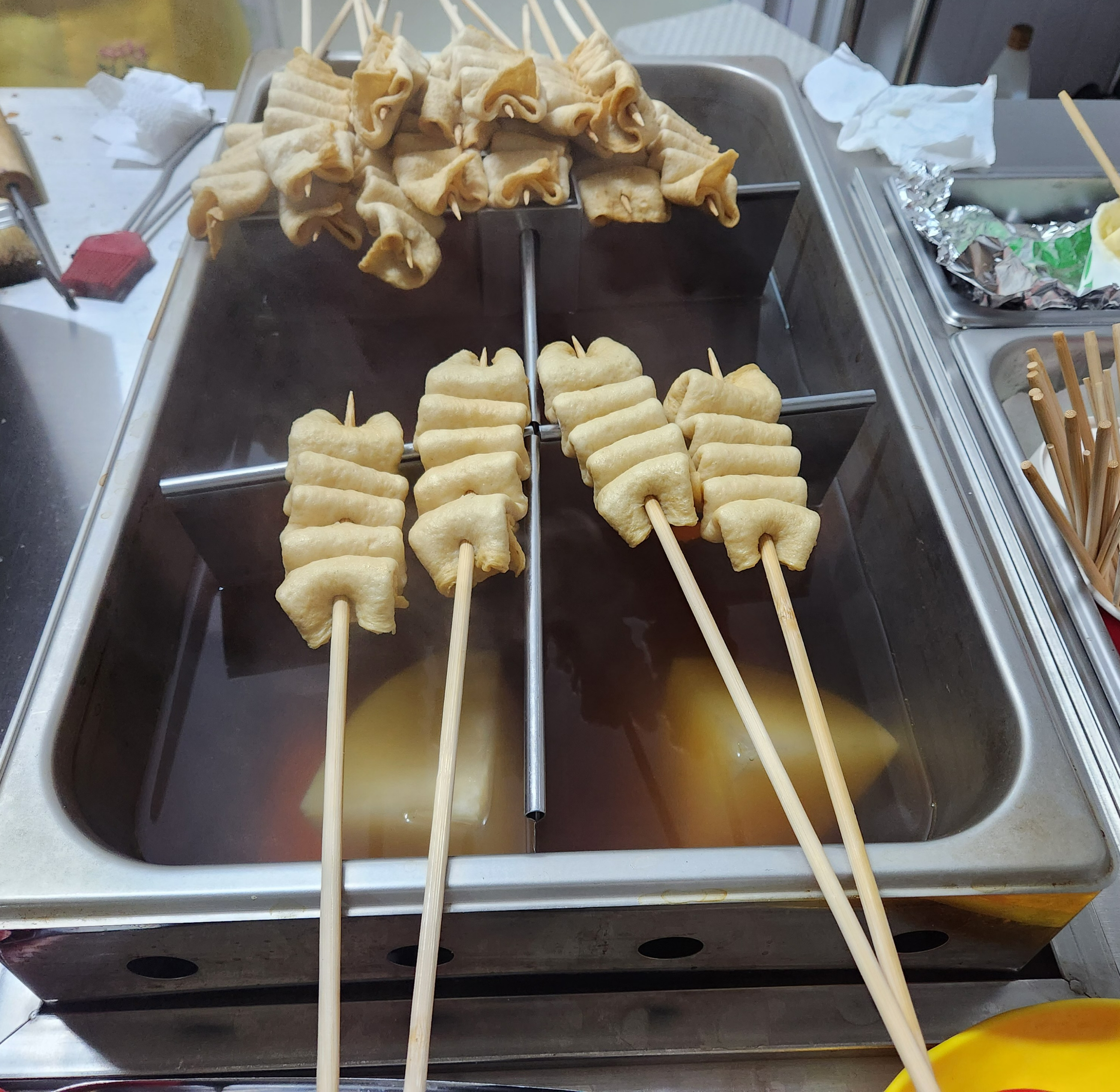토스트를 주문하고 기다리는 동안 따뜻한 어묵을 먹었어요.