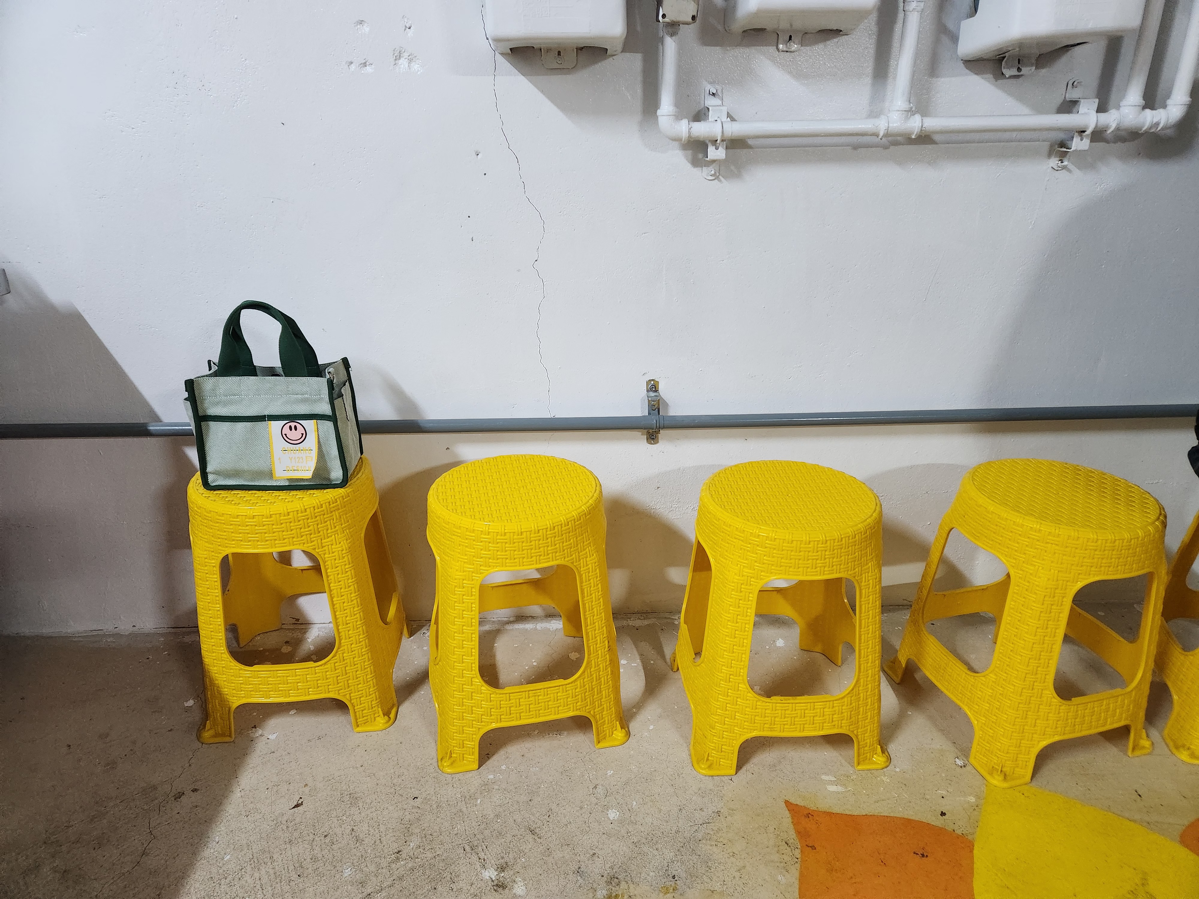 셋 노란 의자가 나란히 줄지어 손님을 기다리고 있는 모습이 귀여워 한 컷 찰칵 ~