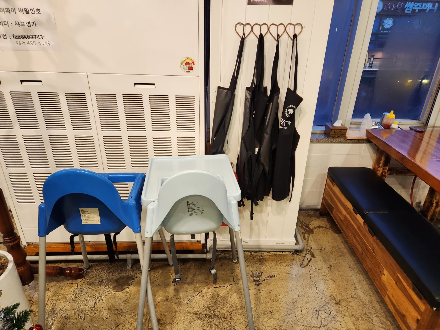 앞치마, 유아의자도 함께 준비되어 있답니다.