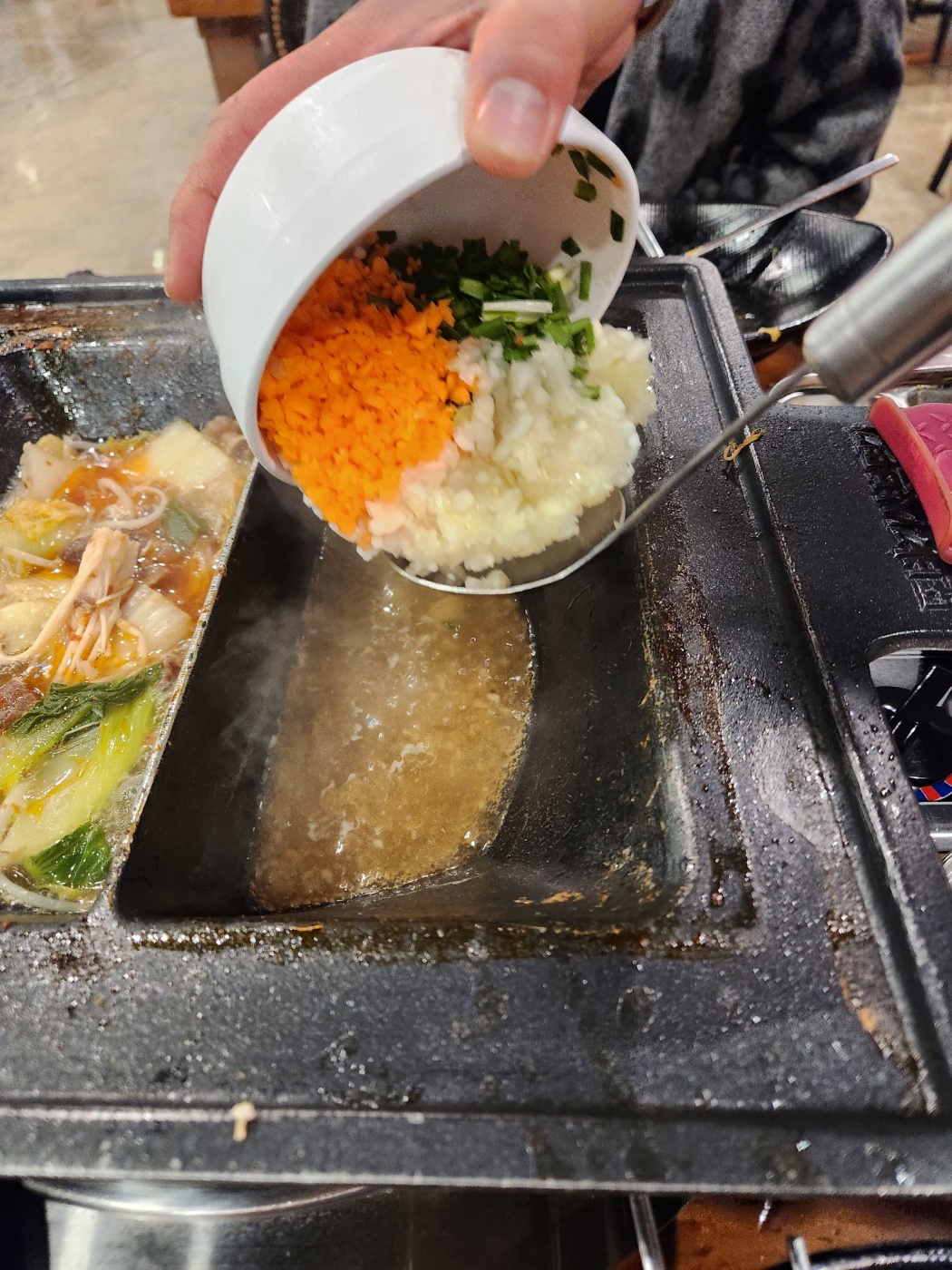 고기의 기름이 있어 기름은 걷어내고 다양한 야채들을 넣어 또 한번 식사를 시작했어요.