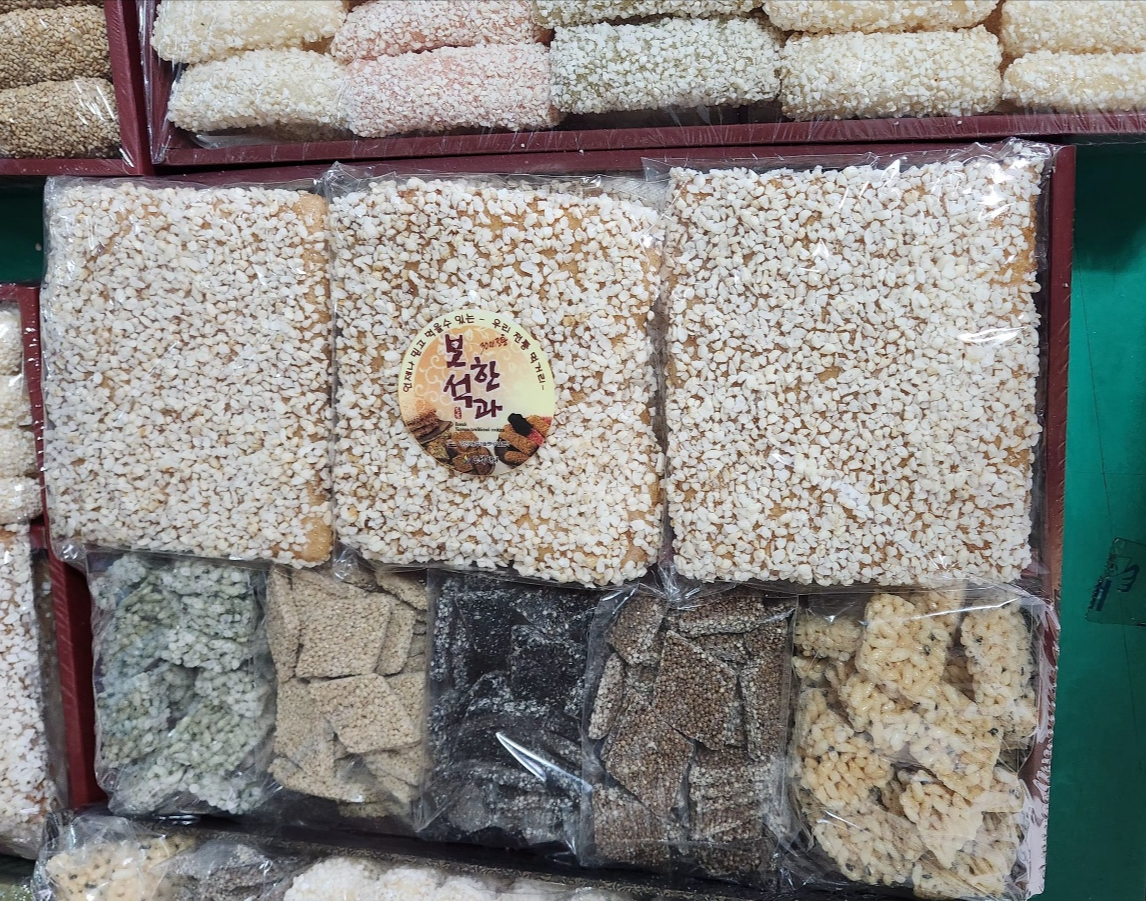 한과 종류로는 깨로 만든 한과와 깨강정도 있고요 제사에 많이 사용하는 넓은 한과도 있는데요.