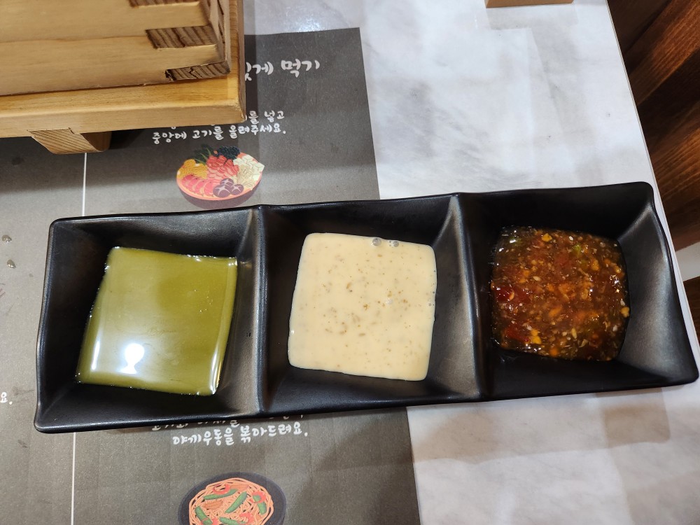 소스는 칠리, 참깨, 고추냉이간장 3가지로 준비되어 있었습니다.