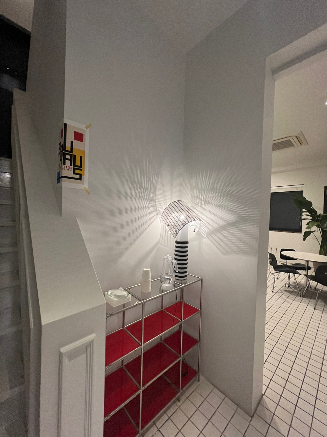 2층으로 오르는 계단 옆 서비스테이블에 조금 특이한 조명이 비치되어 있네요.