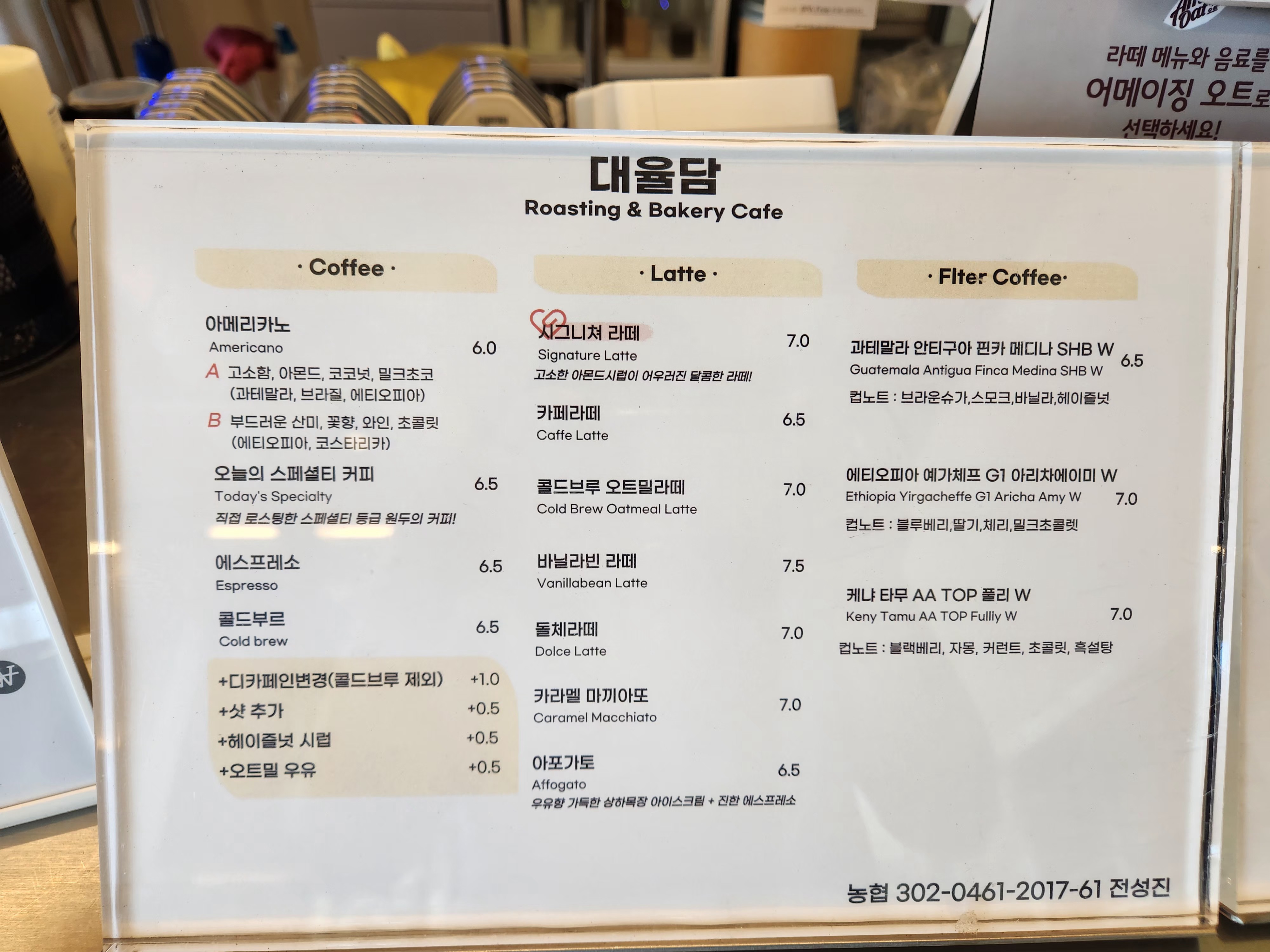 점심을 건너뛰고 카페에서 간단히 점심 겸 차를 마실수 있는 디저트 카페를 찾다 '대율담 베이커리 카페'에 오게 되었어요.