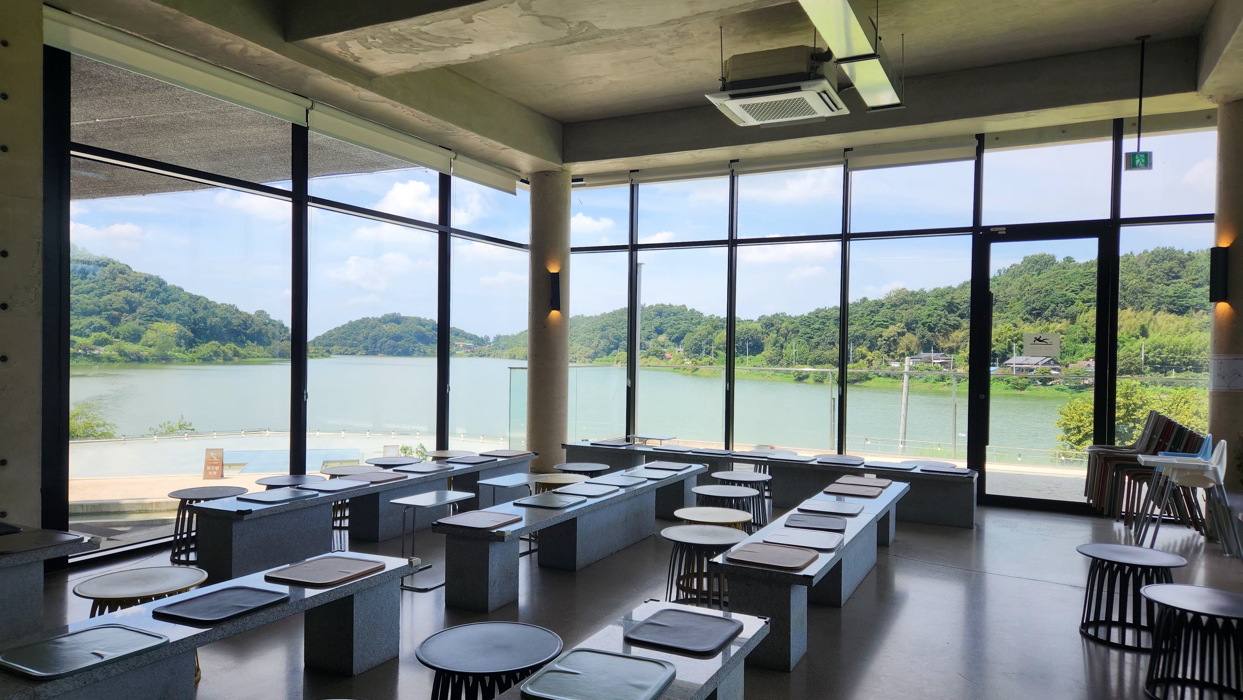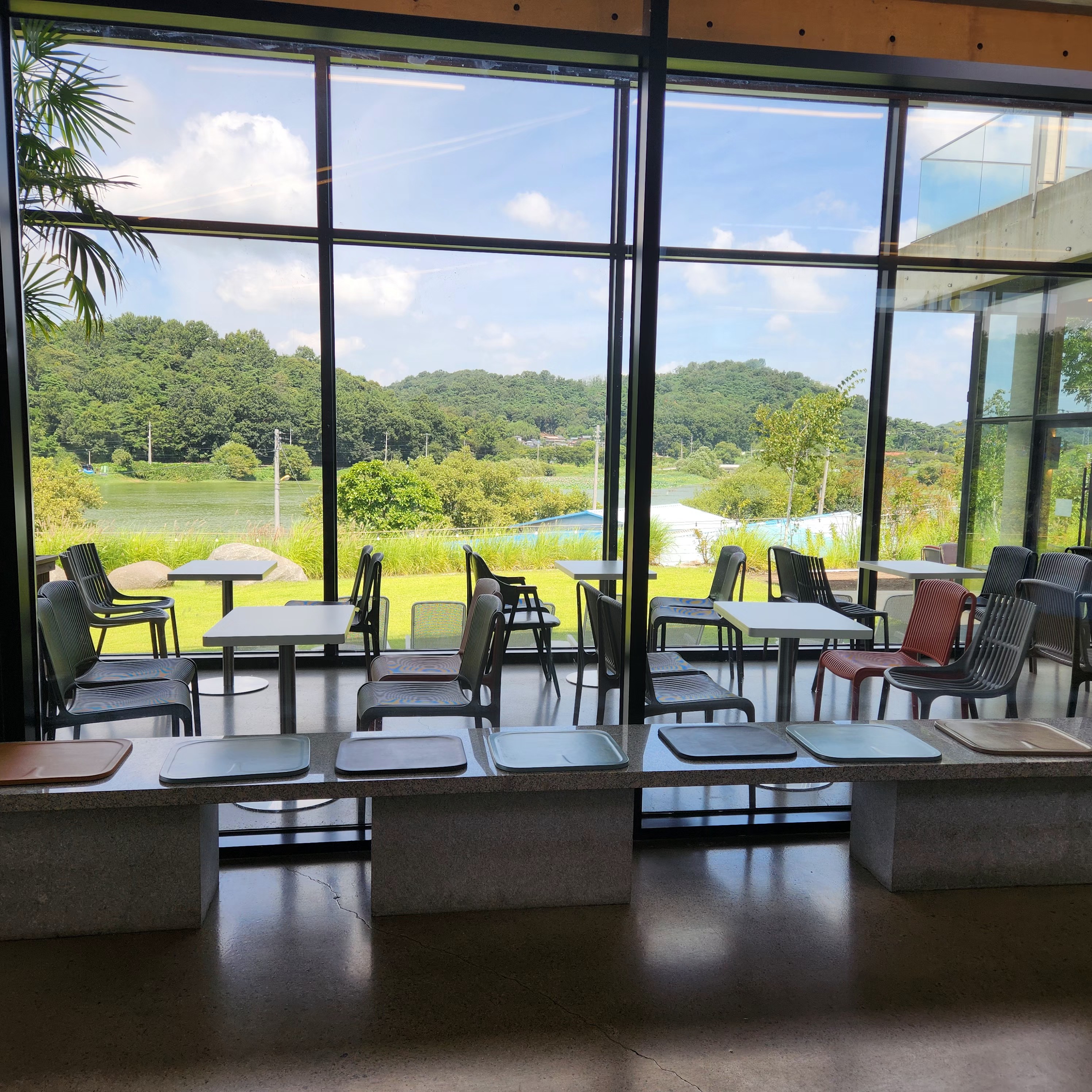 - 카페 공간이 통창으로 되어있어 자연을 있는 그대로 볼 수 있어 좋아요.
