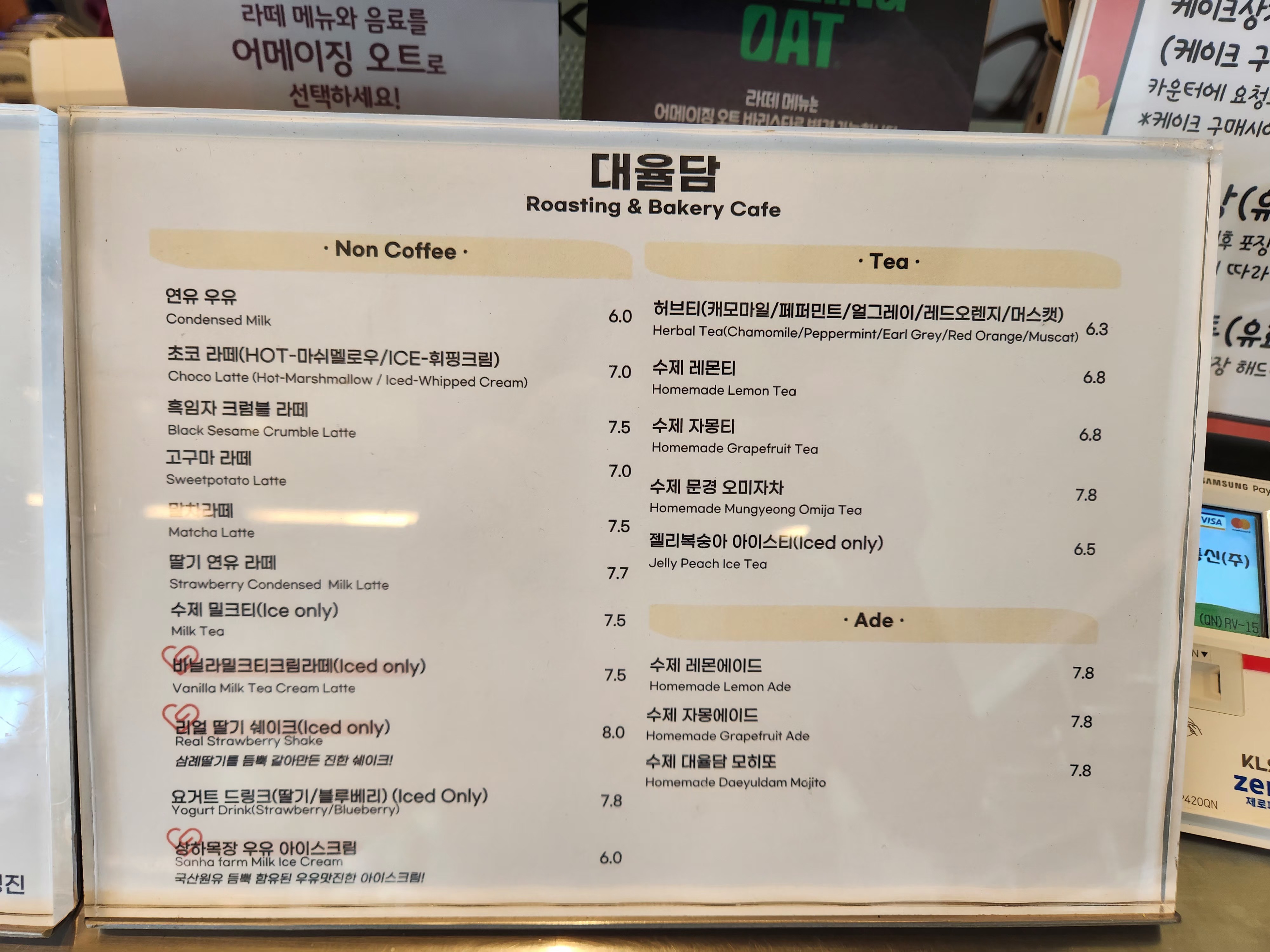 시그니쳐 음료 : 바닐라밀크티크림라테, 리얼딸기 쉐이크, 상하목장 우유 아이스크림
