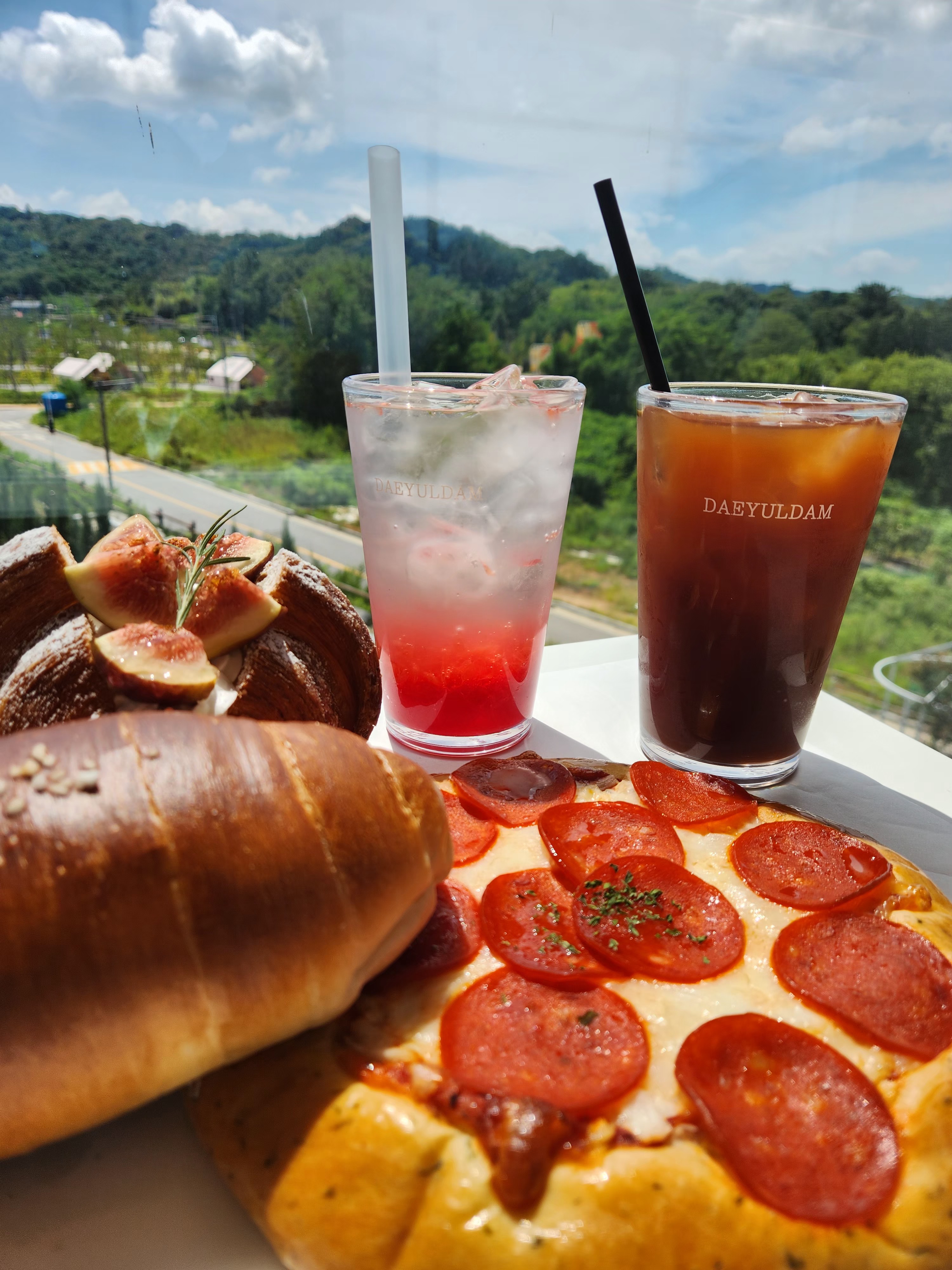 저희는 B아이스 아메리카노, 아이스 수제 자몽티, 소금빵, 페페로니피자, 무화과 생크림 크루아상을 주문했어요.
