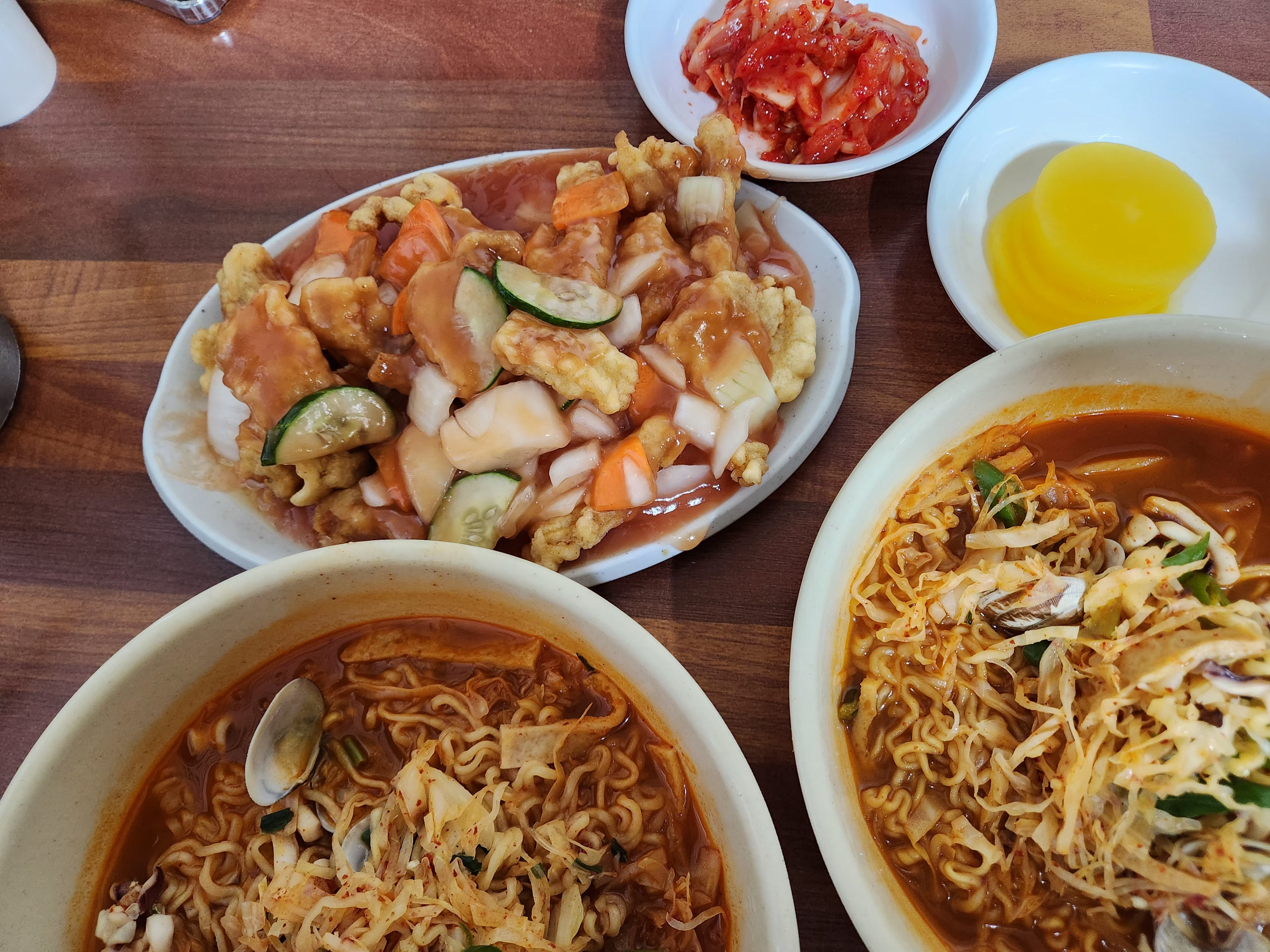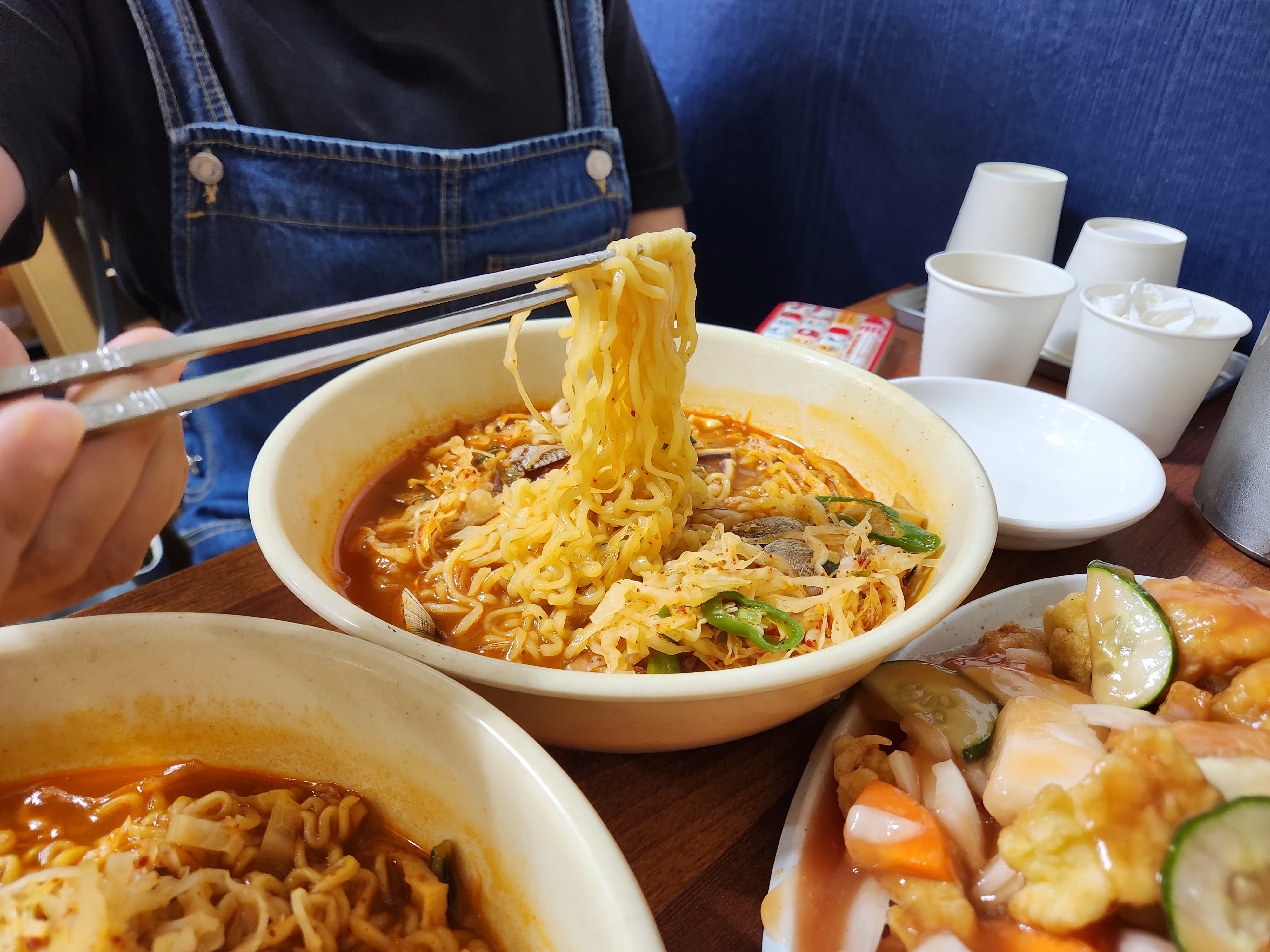 아마도 우리 분식에서 짬뽕라면과 1인분 탕수육이 탄생한 것 같아요.