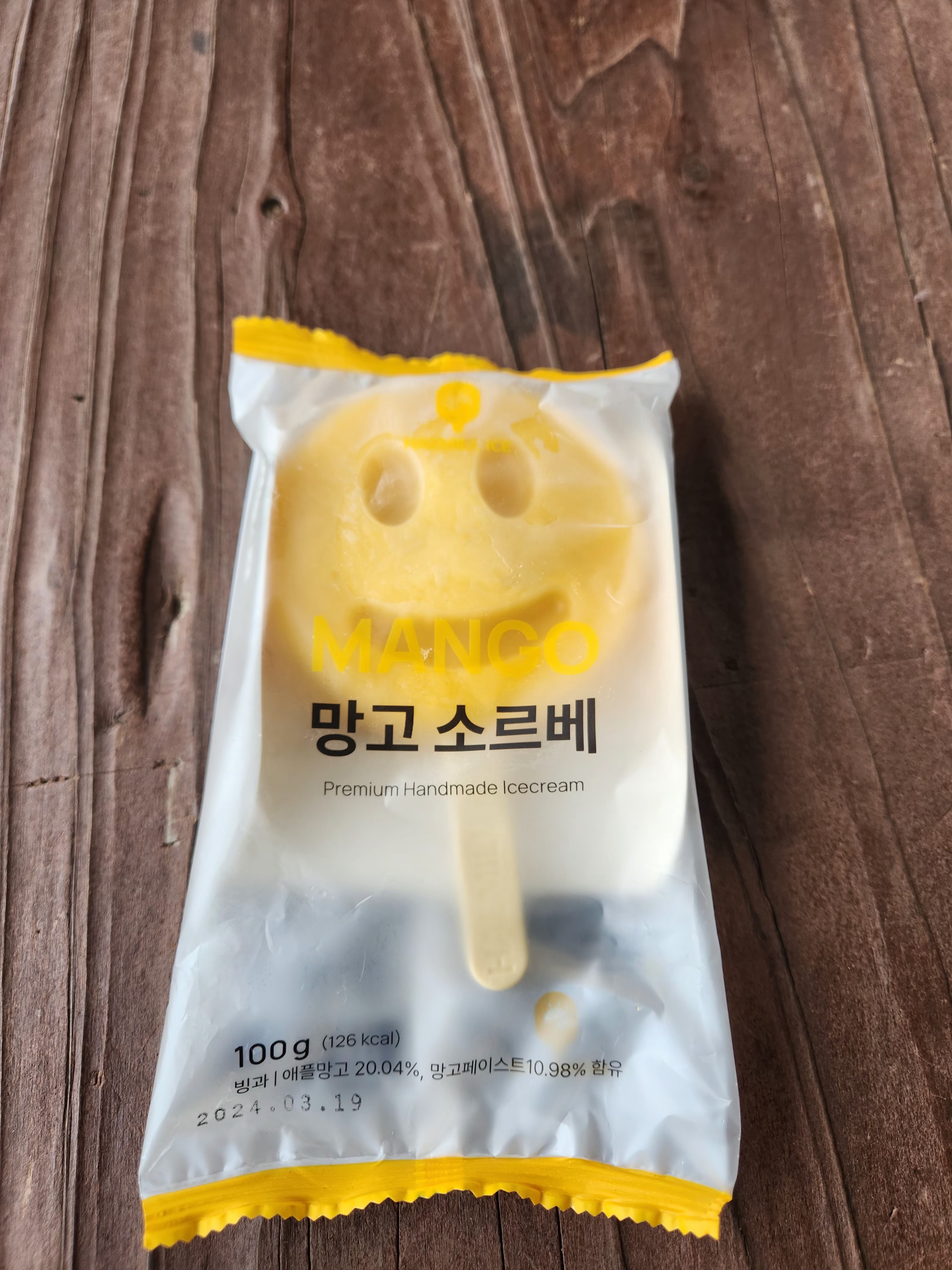 처음엔 초콜릿아이스크림을 먹을까 생각했는데 품절이라 아쉽게 망고로 정했는데요.