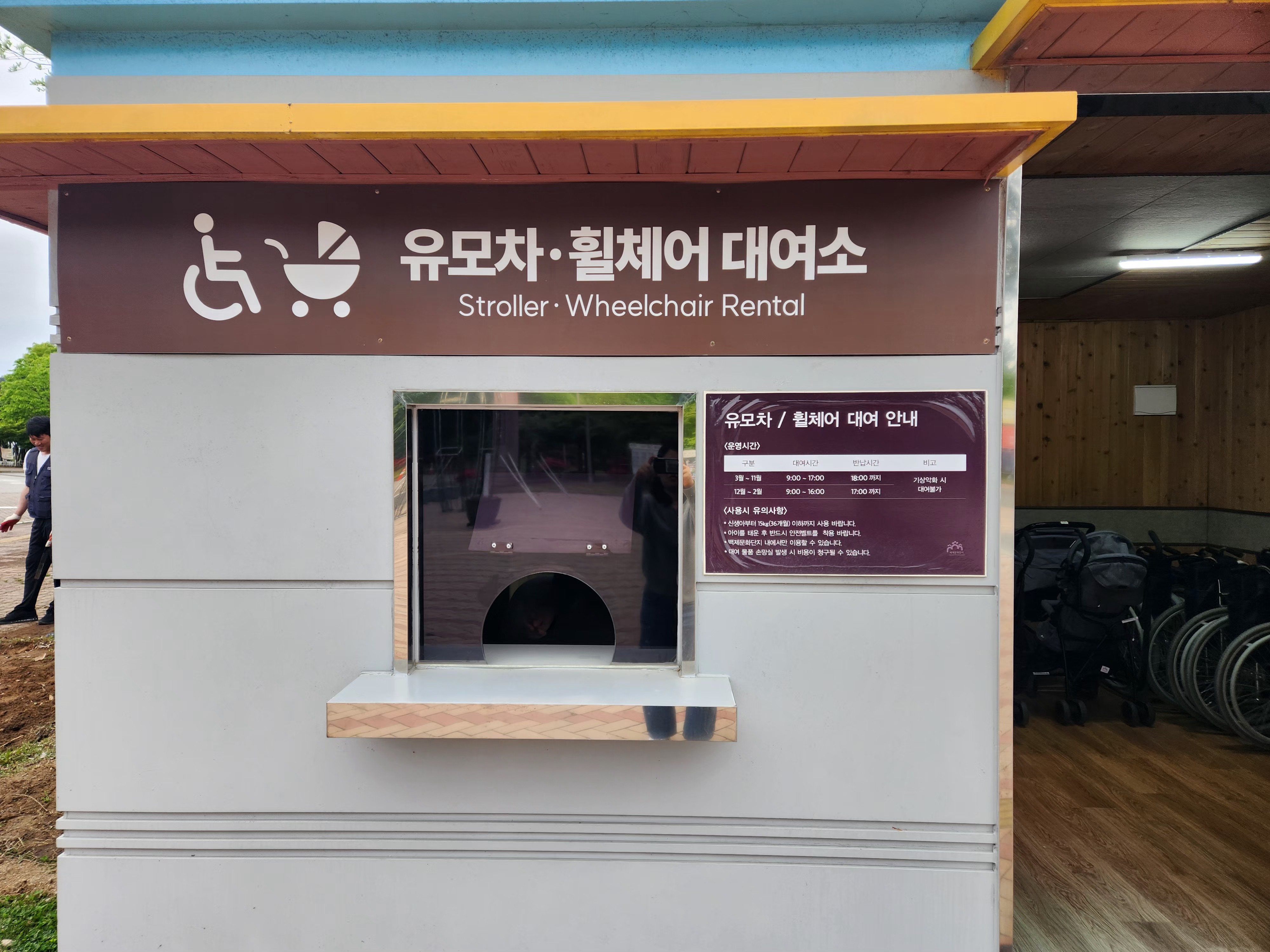 유모차와 휠체어 대여소가 입구에 자리잡고 있으며, 문화단지 입장료쪽에 우산과 방패연을 무료로 대여해주고 있답니다.
