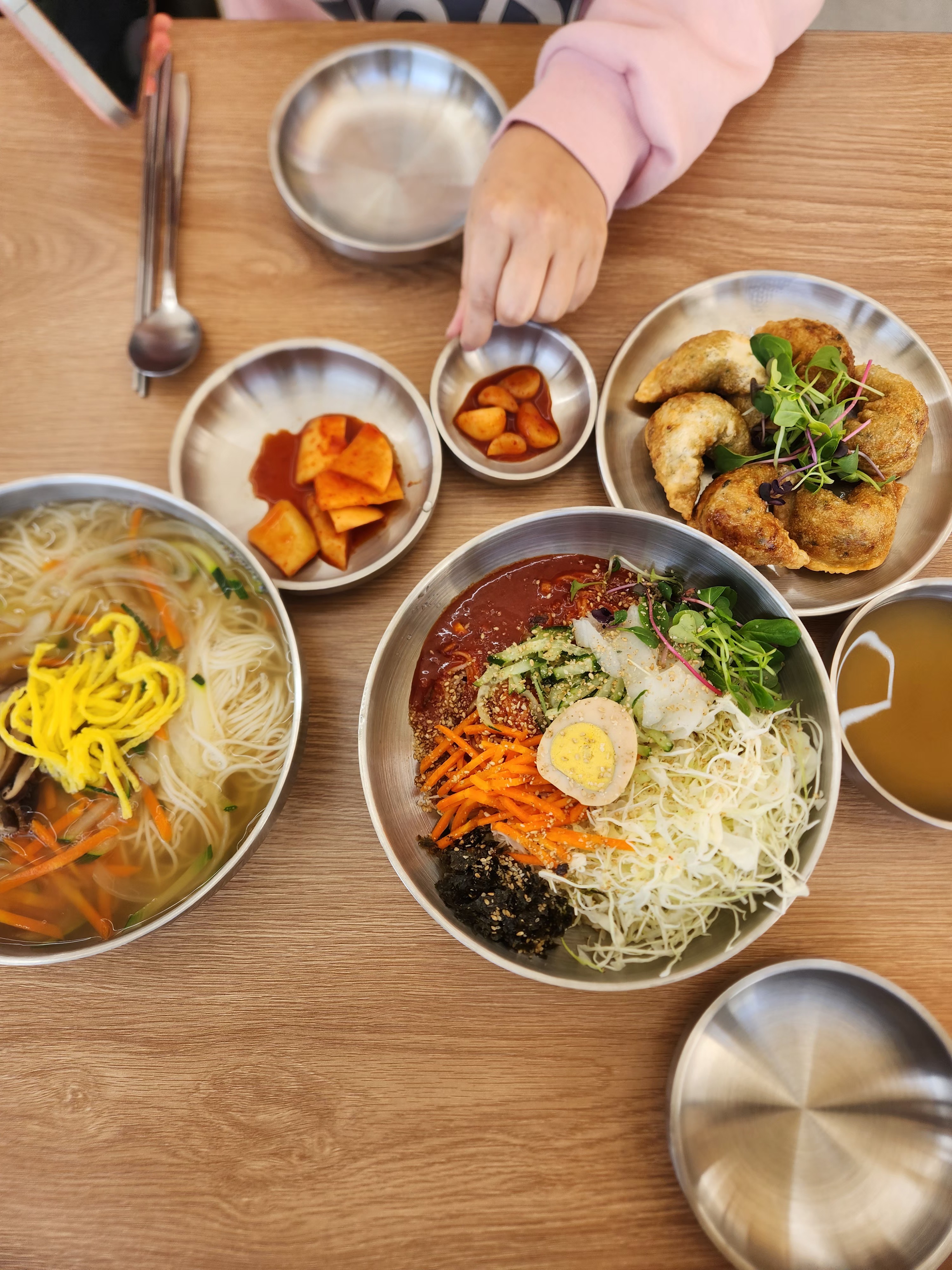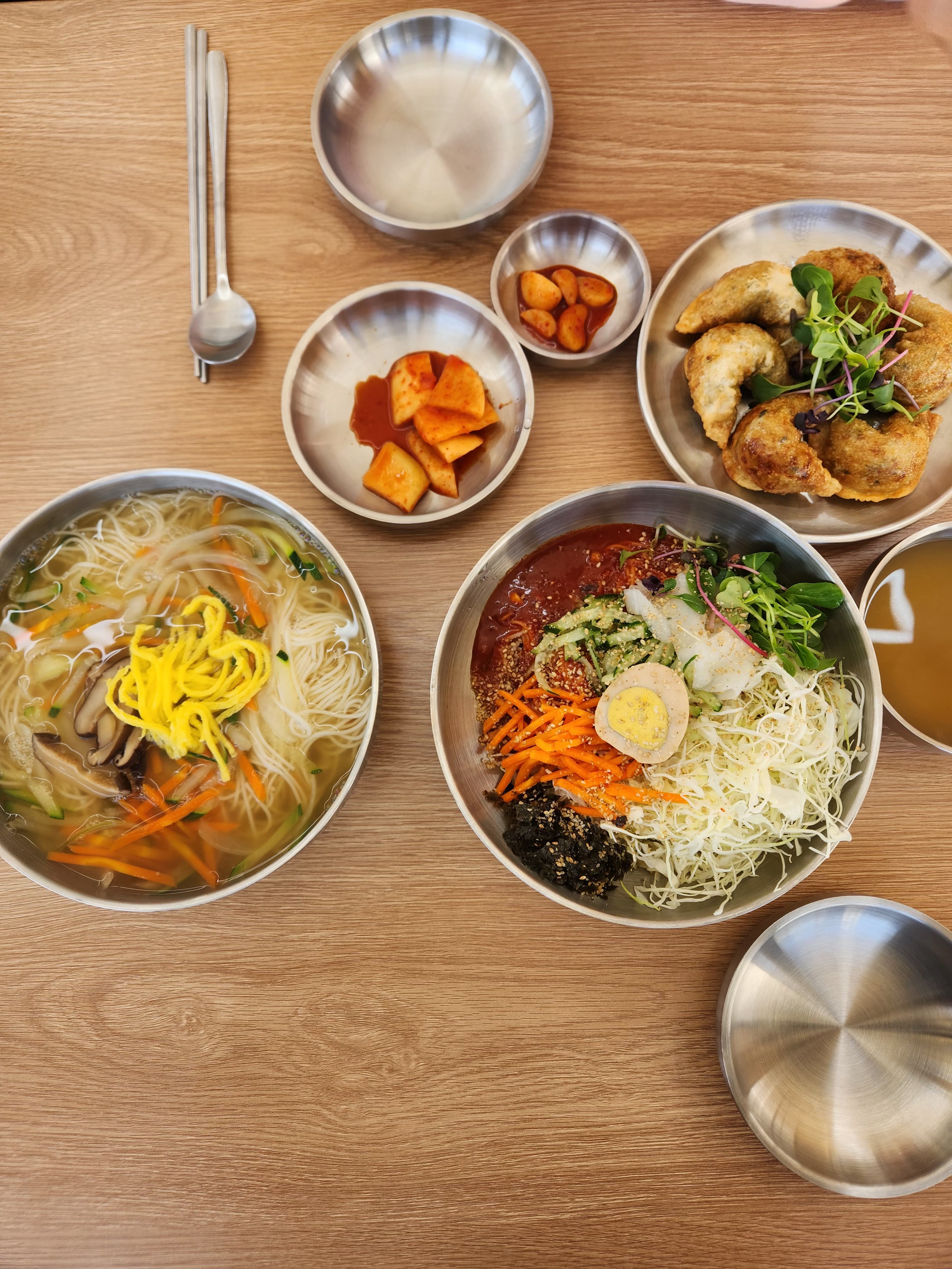 오늘은 비빔국수와 물국수 그리고 군만두를 먹고 왔어요.
