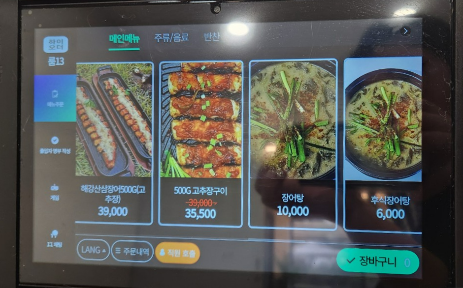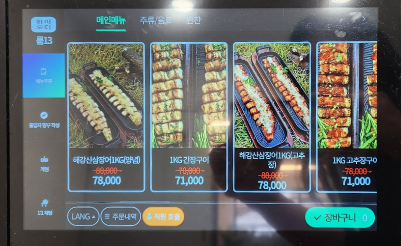 해강장어 주문은 요즘 새로 오픈하면 볼 수 있는 자리마다 준비되어 있는 키오스크로 되어 있어 메뉴판을 찾을 수 었었답니다. 사진 찍기에는 다소 아쉬웠지만 주문하기엔 편리하겠죠.