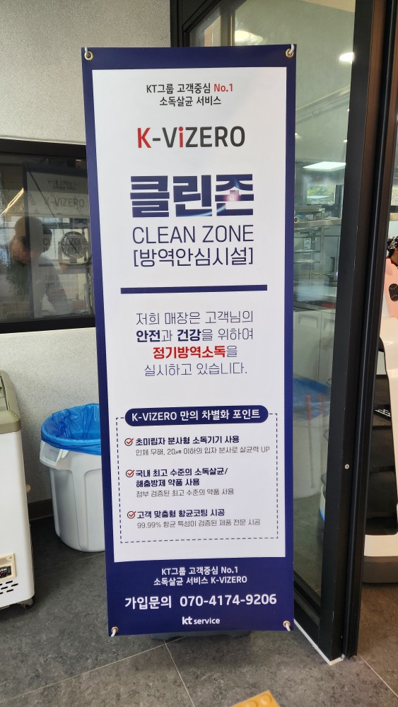 클린존으로 고객의 안전과 건강을 위하여 정기방역소득을 실시하고 있음을 그래서 청결함을 보여주는 것 같았습니다.