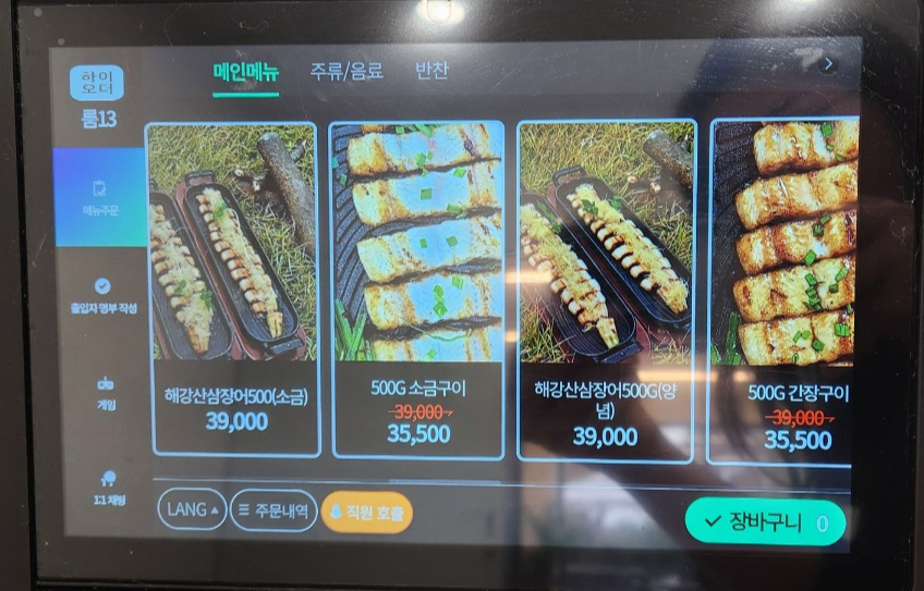 해강장어 주문은 요즘 새로 오픈하면 볼 수 있는 자리마다 준비되어 있는 키오스크로 되어 있어 메뉴판을 찾을 수 었었답니다. 사진 찍기에는 다소 아쉬웠지만 주문하기엔 편리하겠죠.