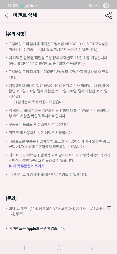 T멤버쉽 고객감사제는 2025년 8월~ 12월까지 진행 됩니다.